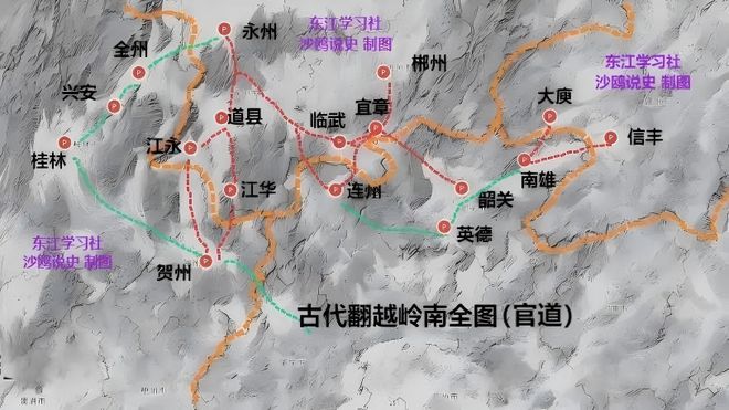 我前几篇关于穿越南岭古道的文章,如《》等文,已经讲述了当时的官道,比如梅关古道,郴韶古道,宜连古道,永连古道,潇贺古道,漓湘道等等(如下图),这些道路自然是运盐通道,有兴趣的朋友可点击文章下面链接阅读,本文就不再赘述了。