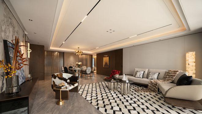 颐海澐颂把整个动区空间,很多类似过道的元素都拿掉了,打包成了一个「中央公共空间」,也就是我们常说的LDKX空间,奢阔感十足,给家人留下最高级的留白和互动空间。